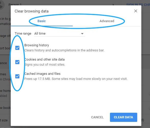 The controls to clear browsing history, cache, cookies, and other data in Chrome are all stored in the same screen. To get to these controls and select what data will be cleared, follow these instructions.